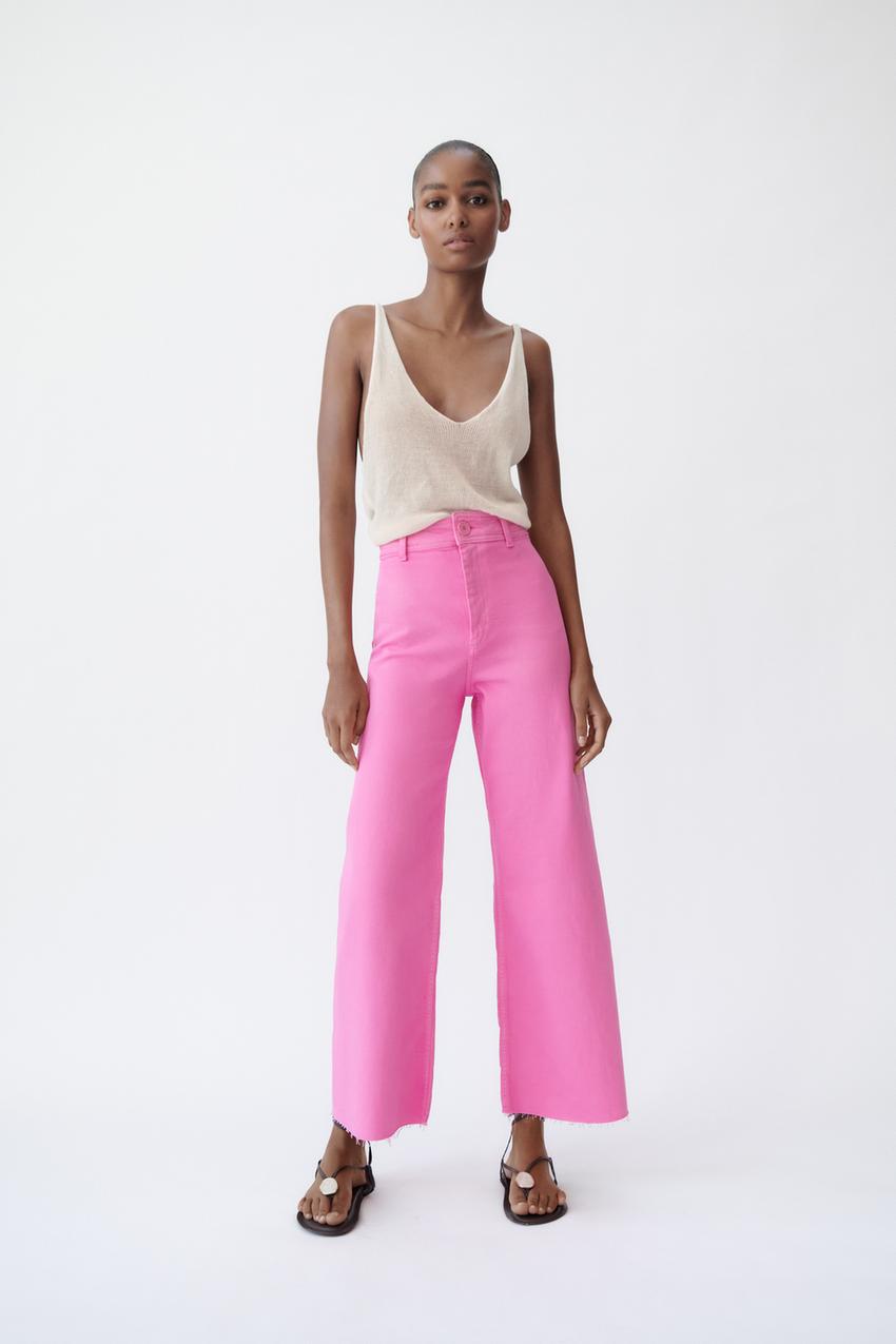 High Waisted Zw Sailor Straight Jeans Fuchsia Zara United States